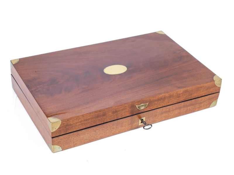 Mahogany-veneered case containing Liège percussion pistols, octagonal barrels rifled and stamped in Liège, light wood with herringbone checkering, engraved and marbled locks, engraved nickel silver fittings, adjustable triggers, case lined with green felt, complete with all loading accessories.