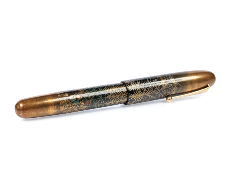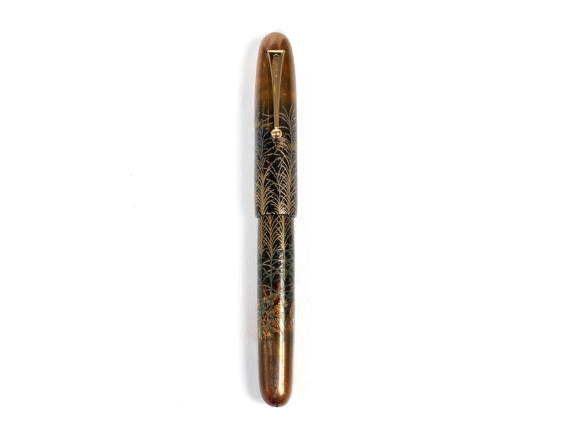 On an ebonite base with urushi lacquer in a decoration of tall grasses and quails.