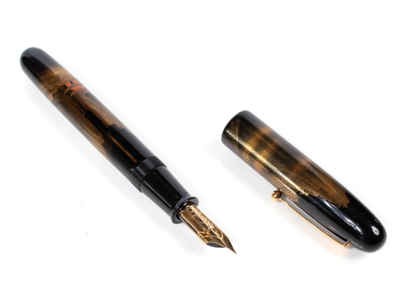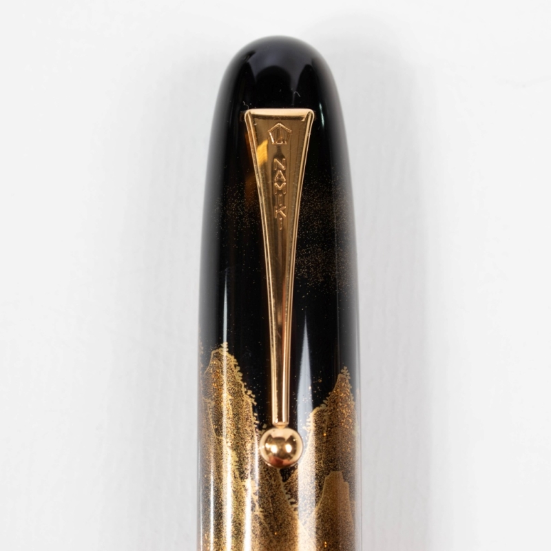 On an ebonite base with urushi lacquer in a mountain pavilion design.