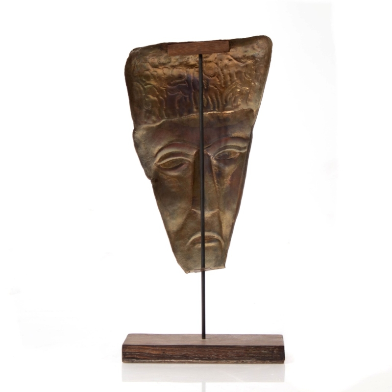 in hammered copper sheet, rosewood base.