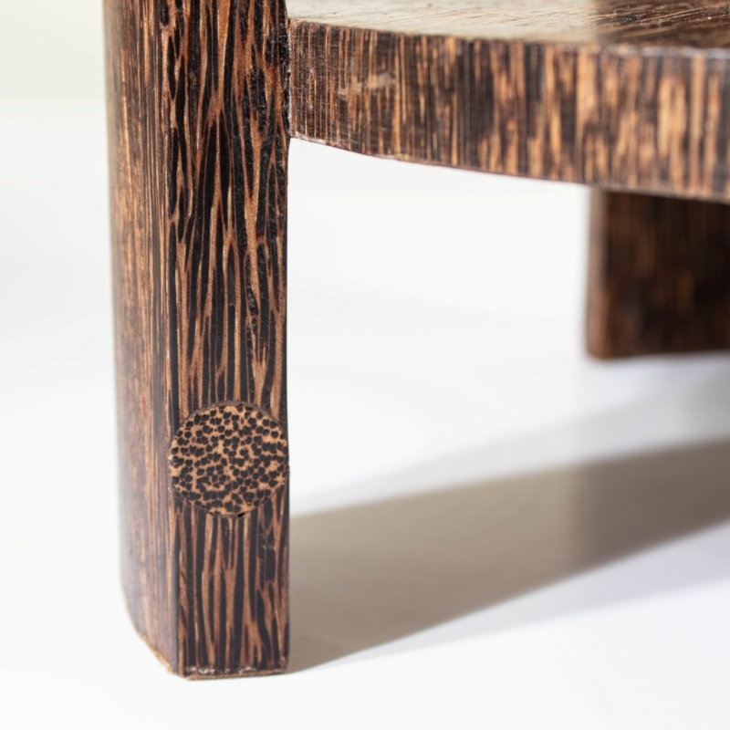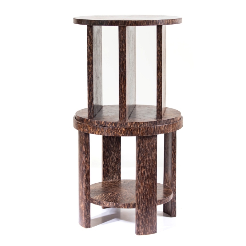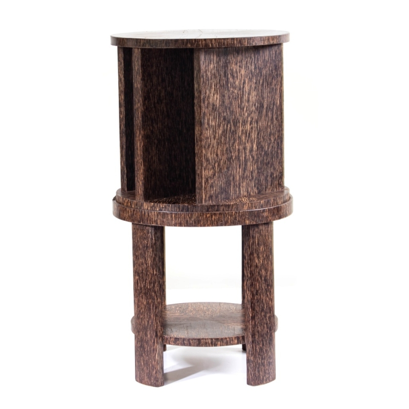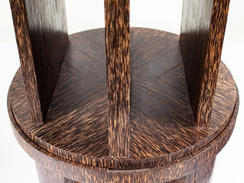 made of palm wood, the upper part rotating on a system of steel and gilded metal balls. Stamp marks on one side.