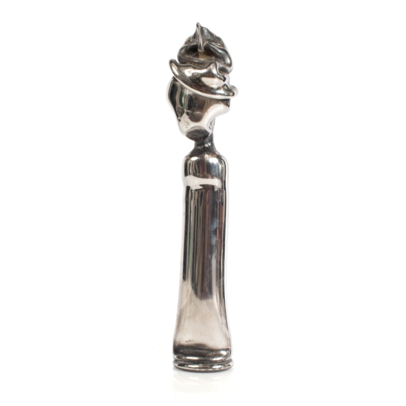 silver-polished steel sculpture, signed with monogram.