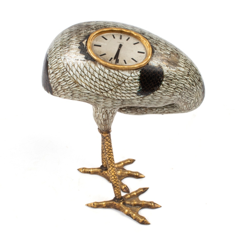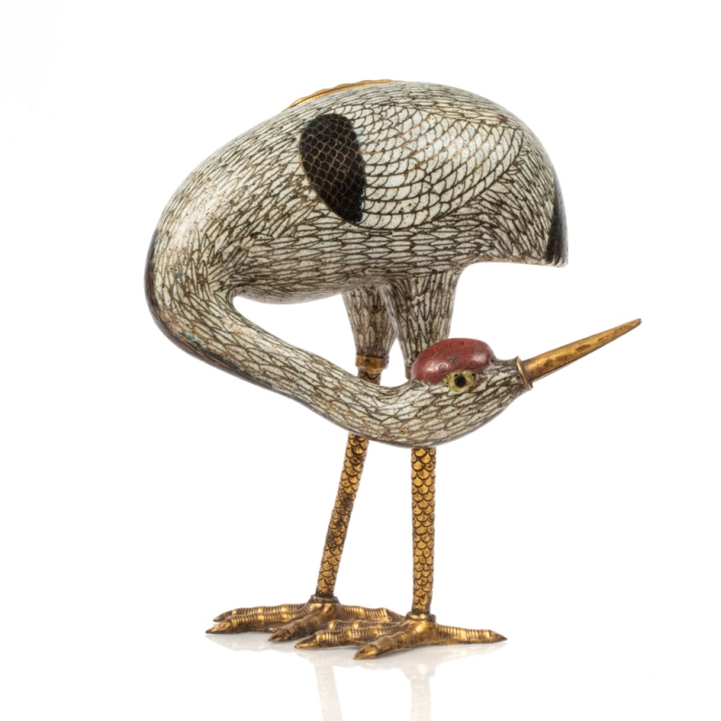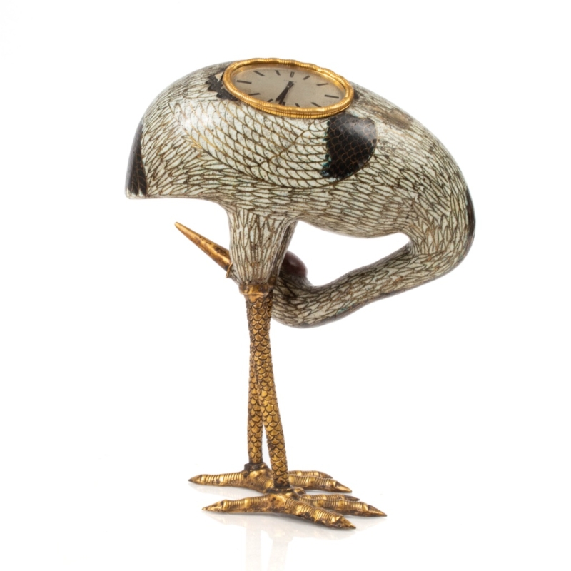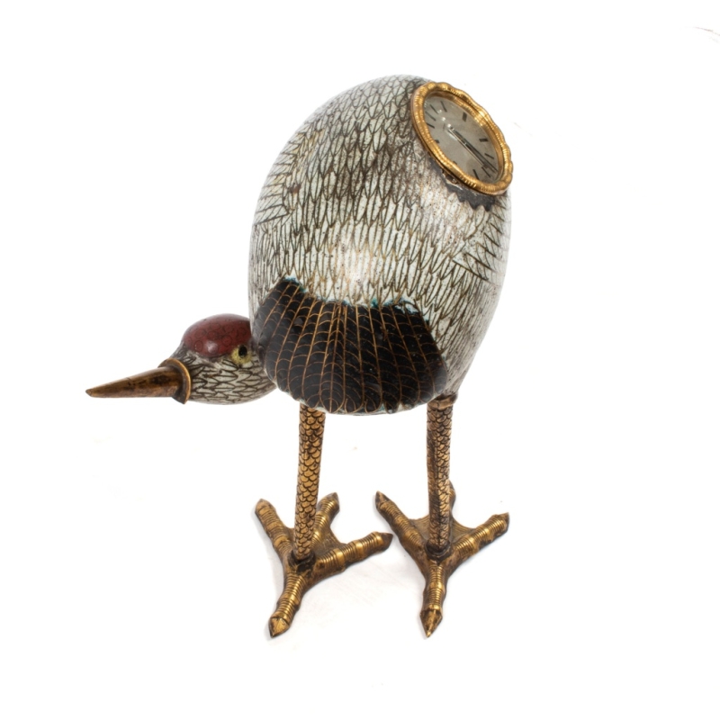 Gilded bronze and cloisonné enamel crane, transformed into a "watch" for