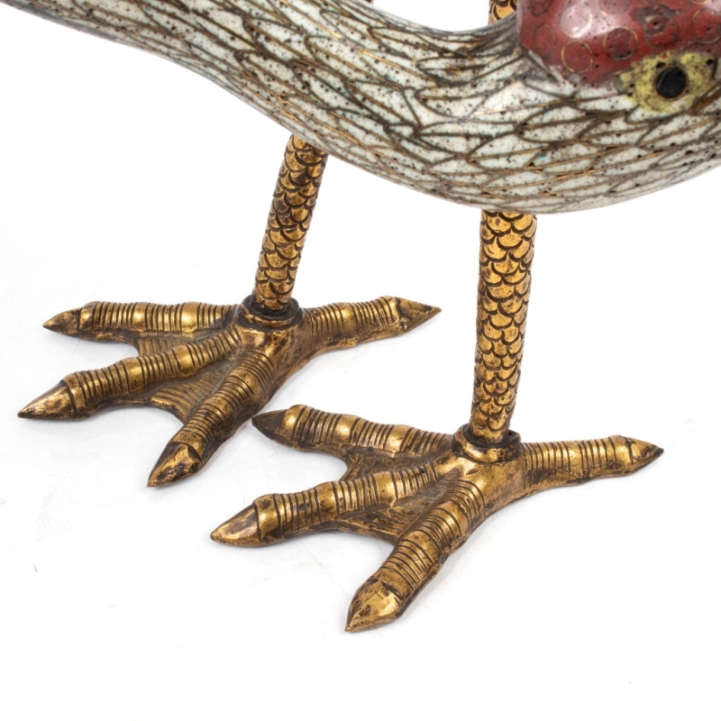 feathers finely drawn and enamelled in white and black, bronze legs