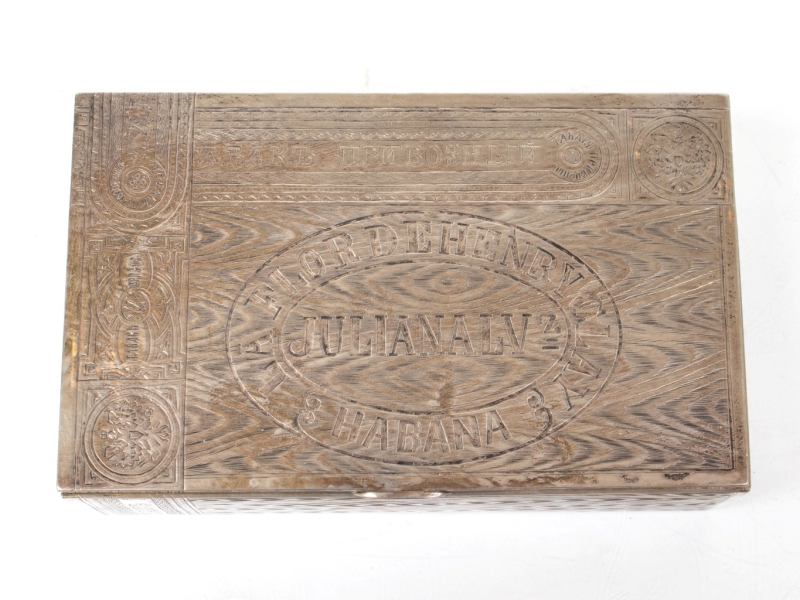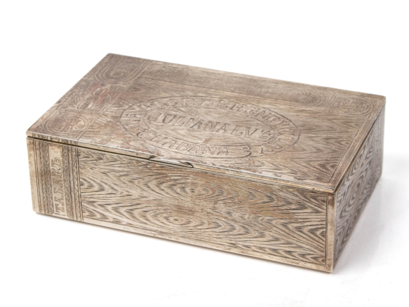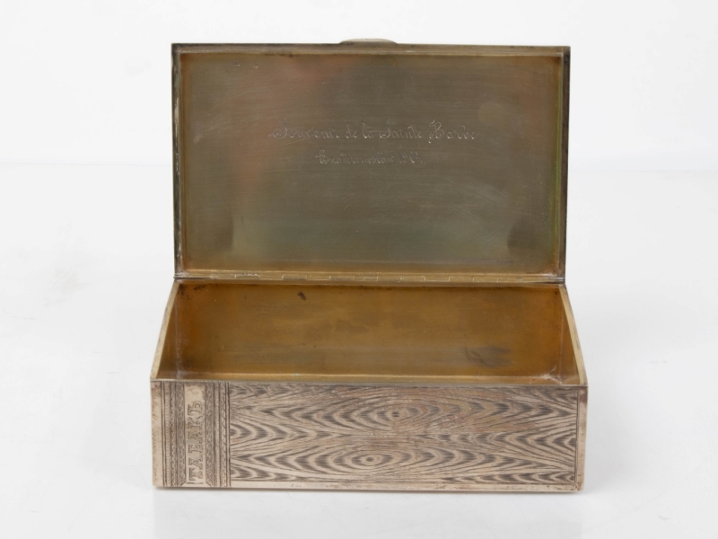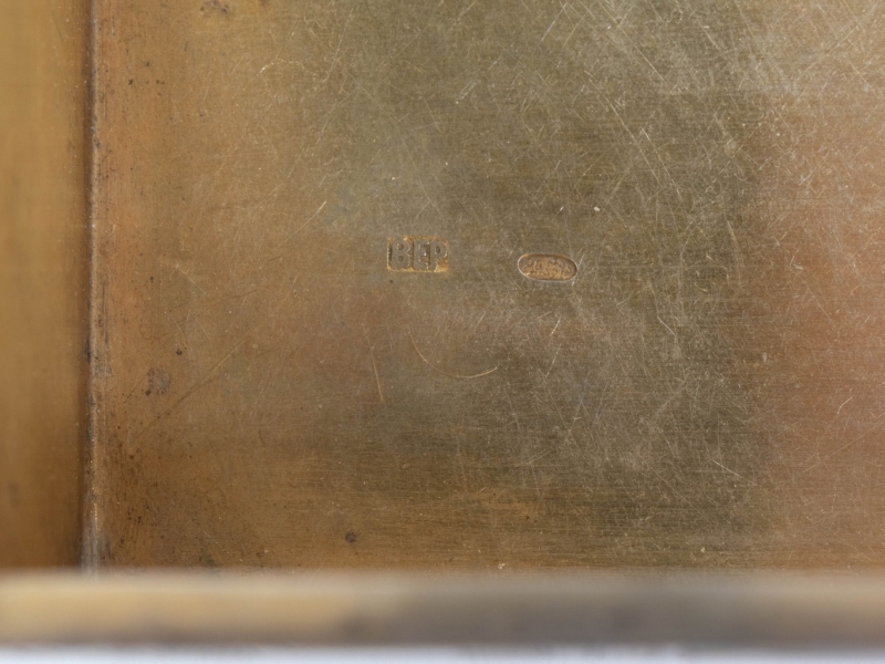 in silver, hallmark: 84 and M.O V.E.R, dedication engraved on the inside of the lid