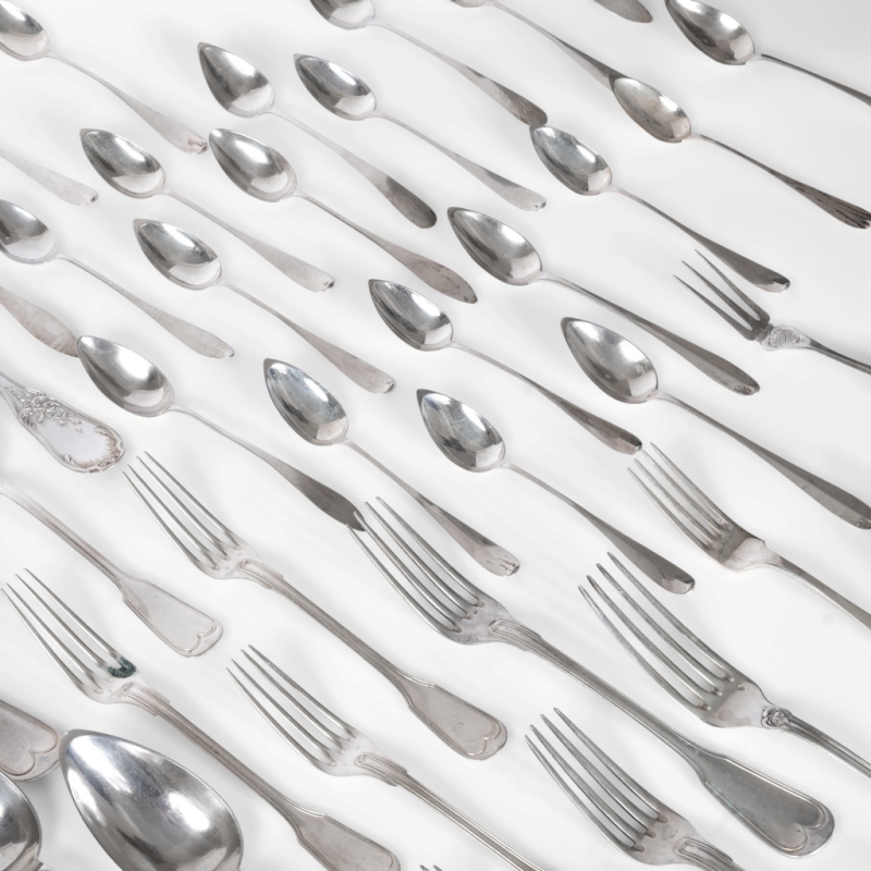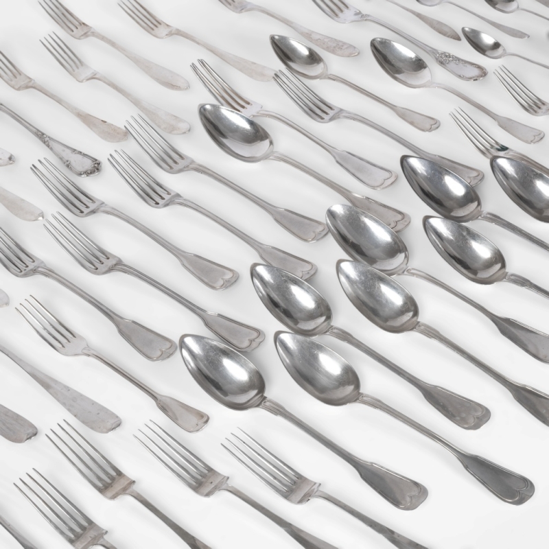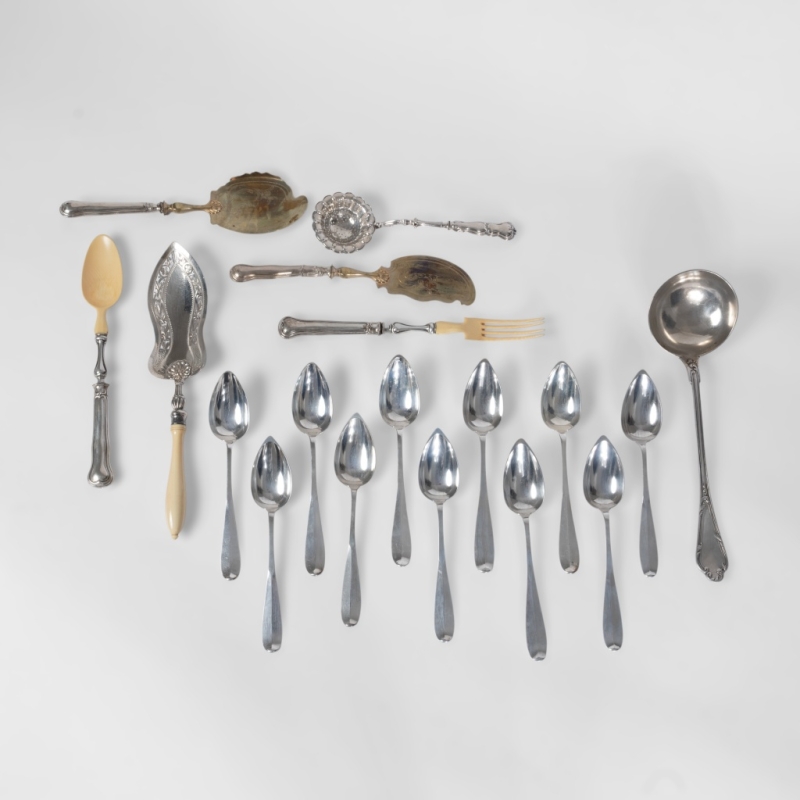 in silver, including 3 DELHEID cutlery sets and 7 service cutlery sets