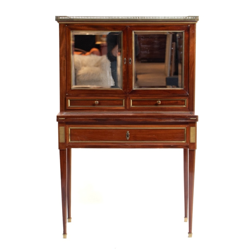 in mahogany, mirrors and gilded brass rods