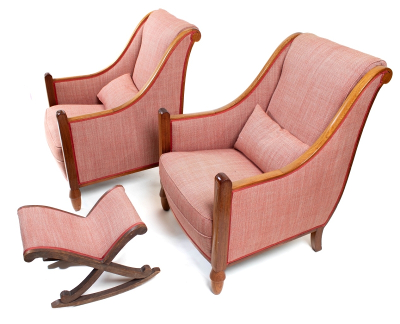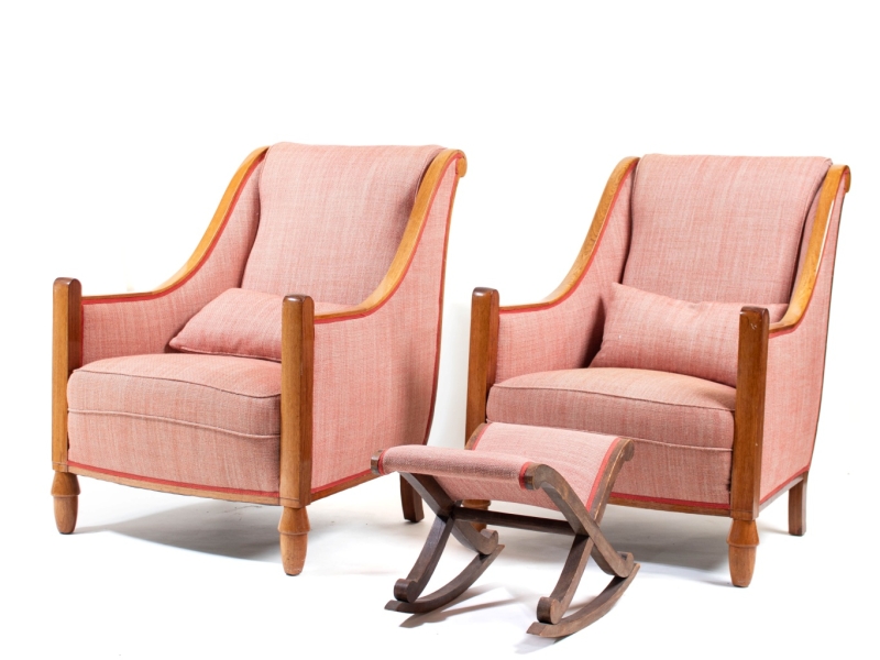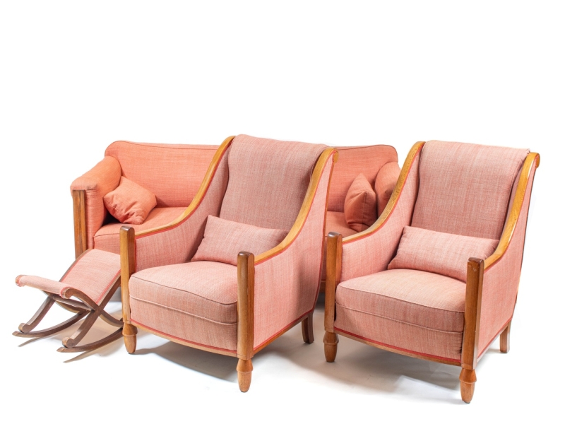 A bench and two armchairs
