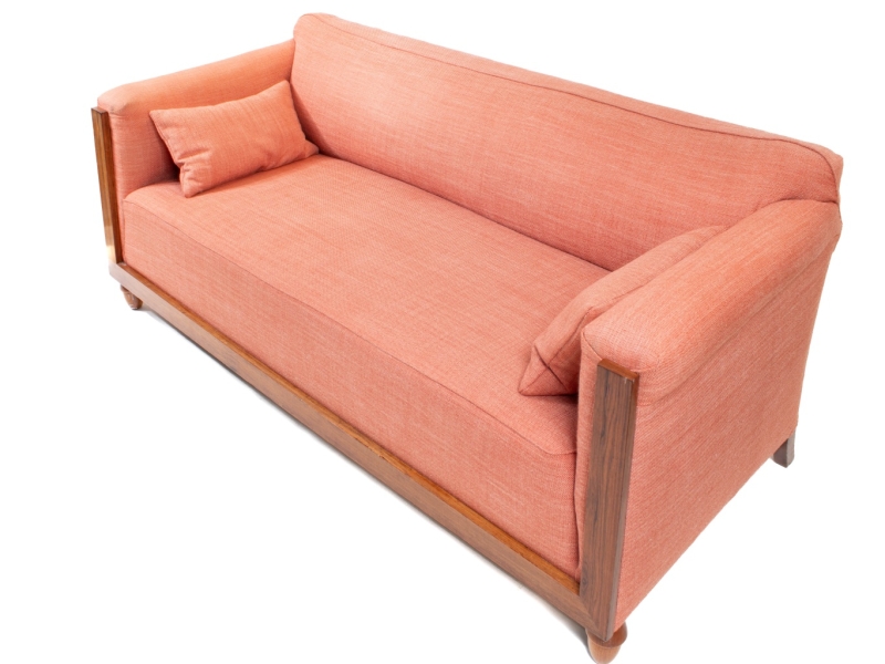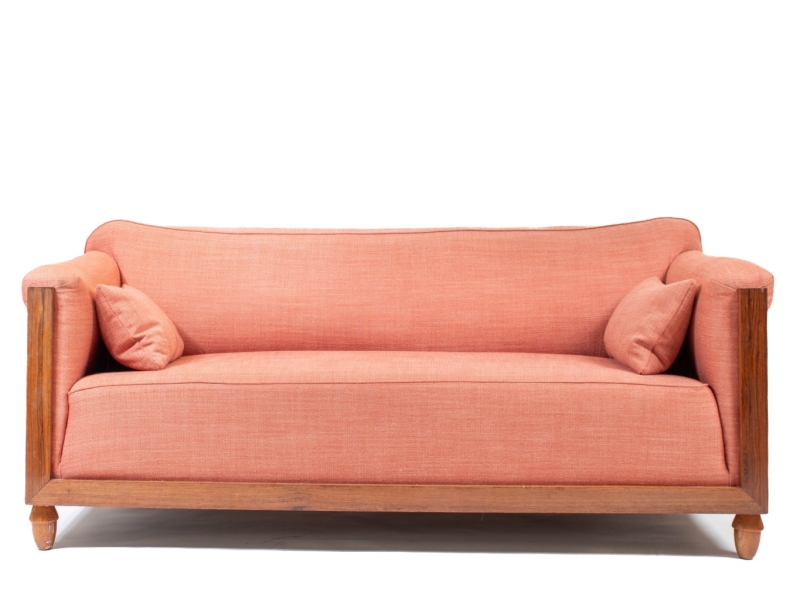 in carved wood upholstered in pink fabric