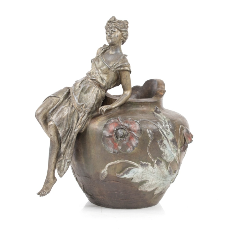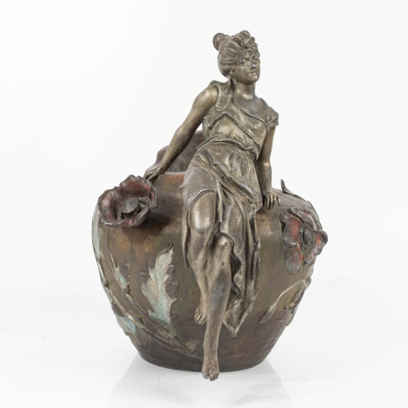 Important Art Nouveau vase "young woman and poppy"