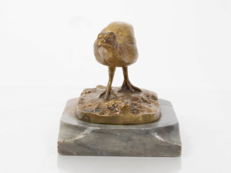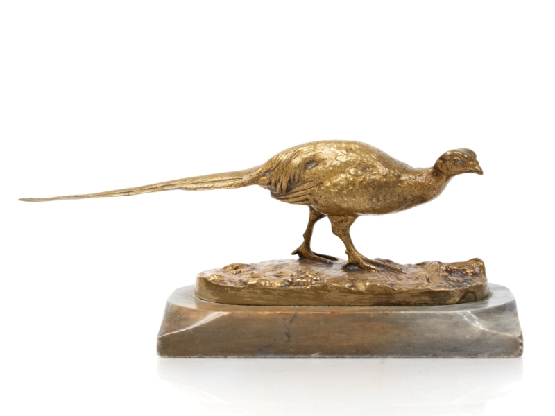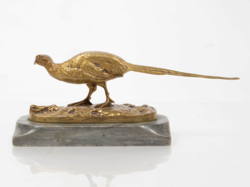 bronze sculpture with golden patina, signed on the terrace, turquoise blue marble base