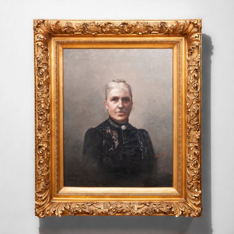 Includes a portrait of a woman on canvas signed Auguste Ruys-Morel (19th century)