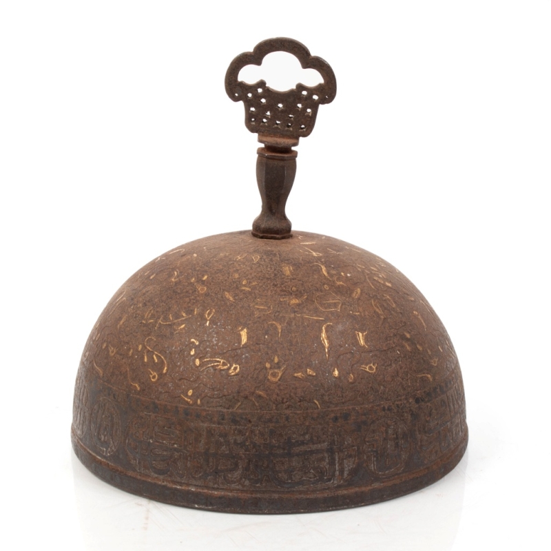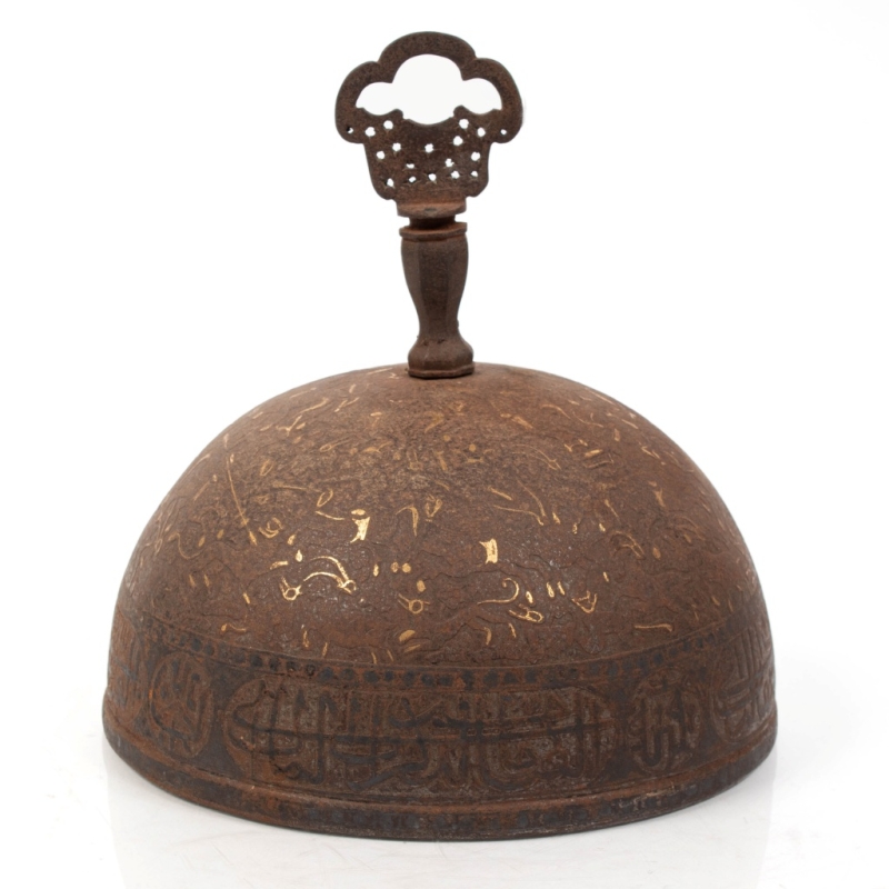 made of gold-inlaid steel, decorated with scenes of hunters on horseback. The edges are decorated with epigraphs.