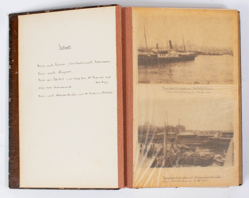 This album contains fifty travel photographs by Joseph Naus, probably taken by himself during his journey from Constantinople to Persia. The photographs are collected in a papier-mâché album decorated with floral motifs.