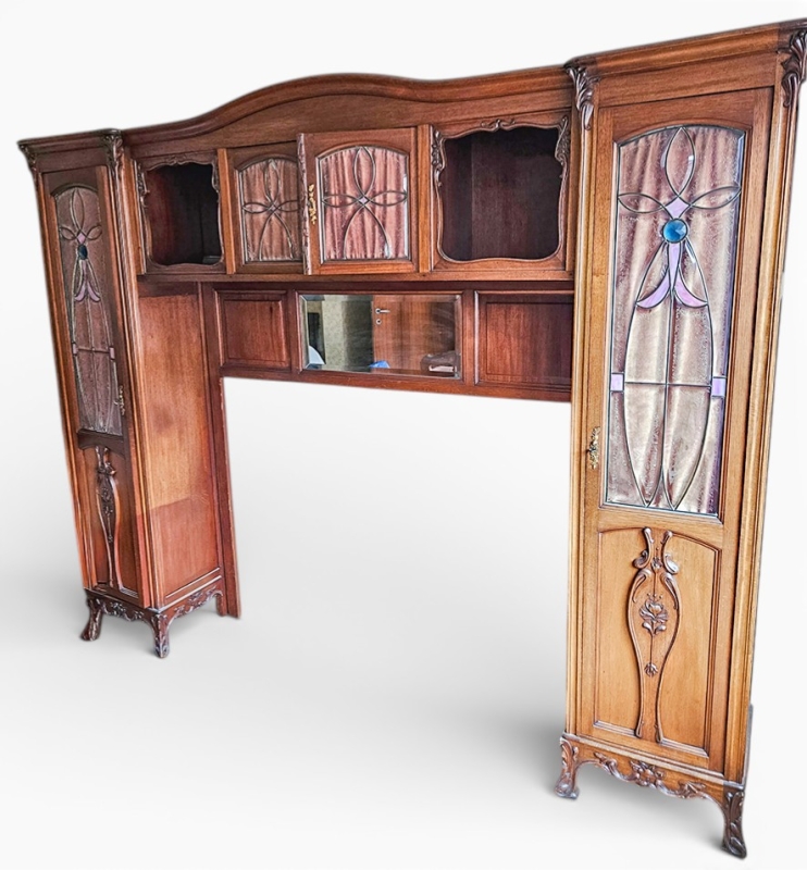 INCLUDED is the original wooden surround, mirror and stained-glass panels, forming a cosy