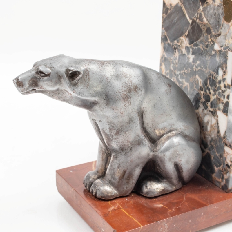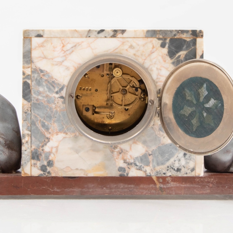 in red and grey marble, silver-patinated metal