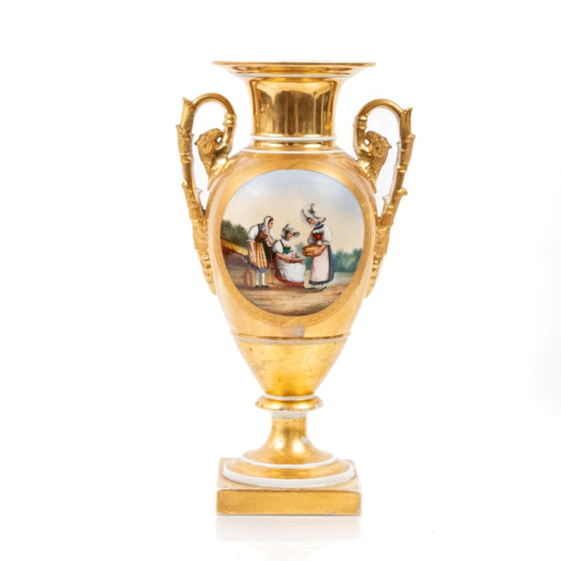 Vase depicting a Swiss landscape and women in traditional dress