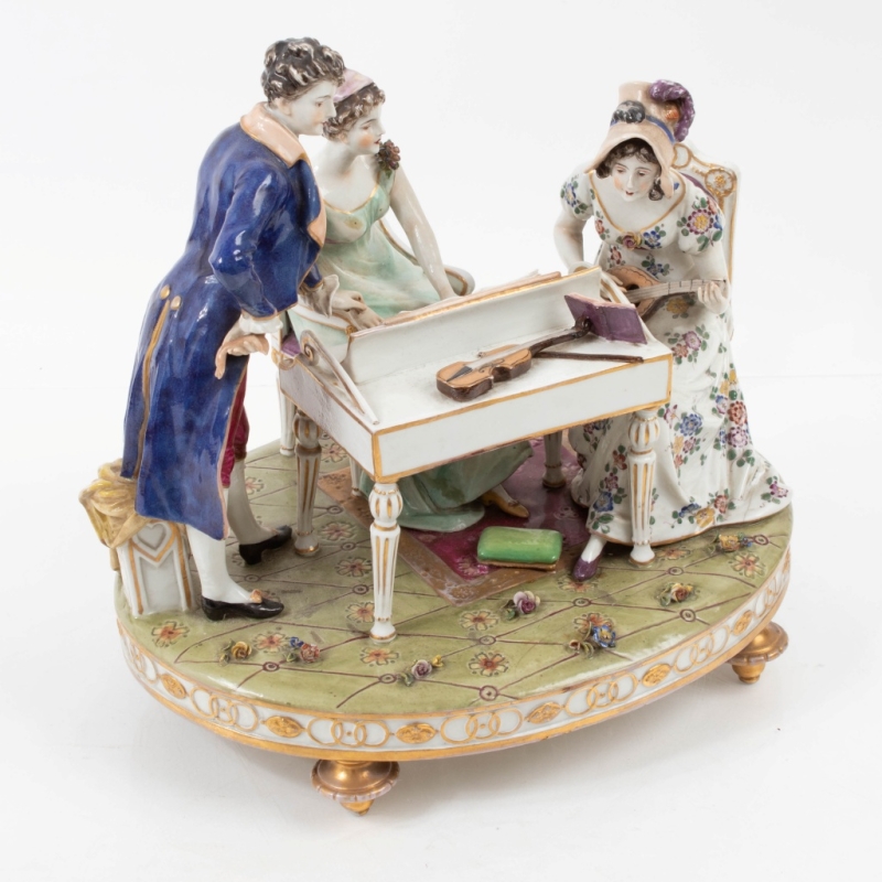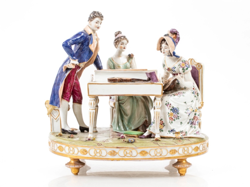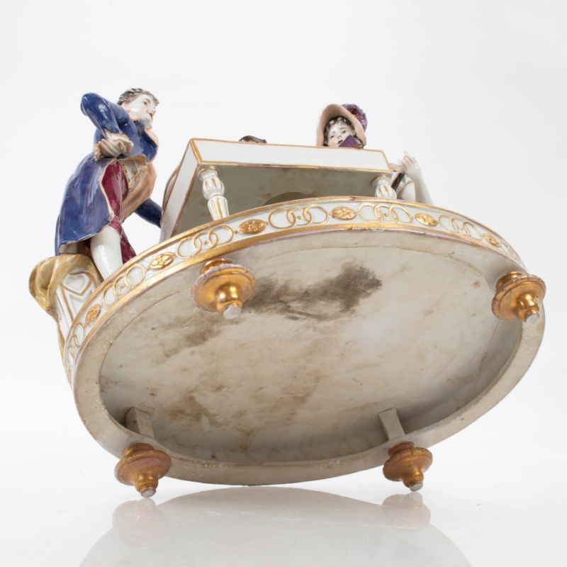 group in polychrome glazed porcelain, signed Renard and marked in blue.