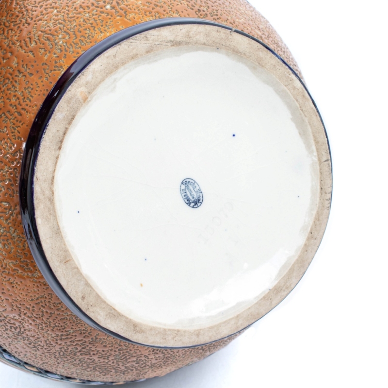 in ceramic with polychrome glazed finish, manufacturer’s mark on the base