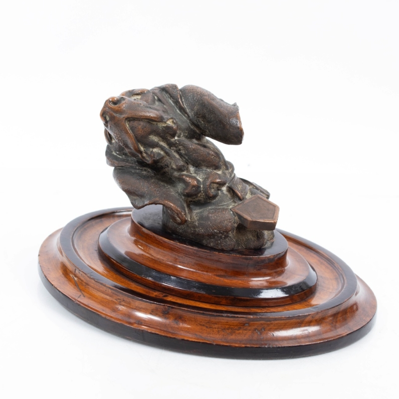 bronze sculpture with brown patina, signed, mounted on a stained wooden plinth