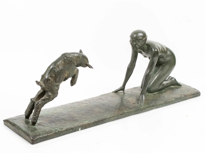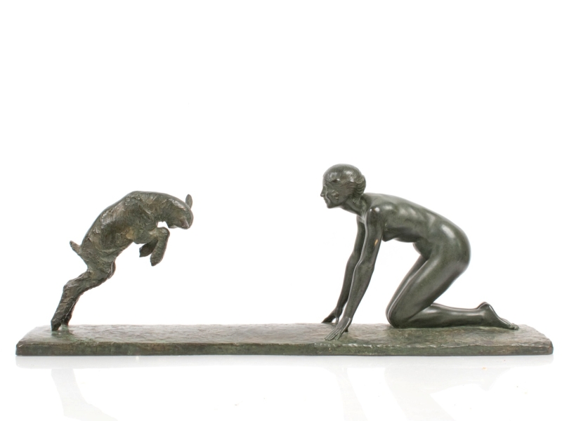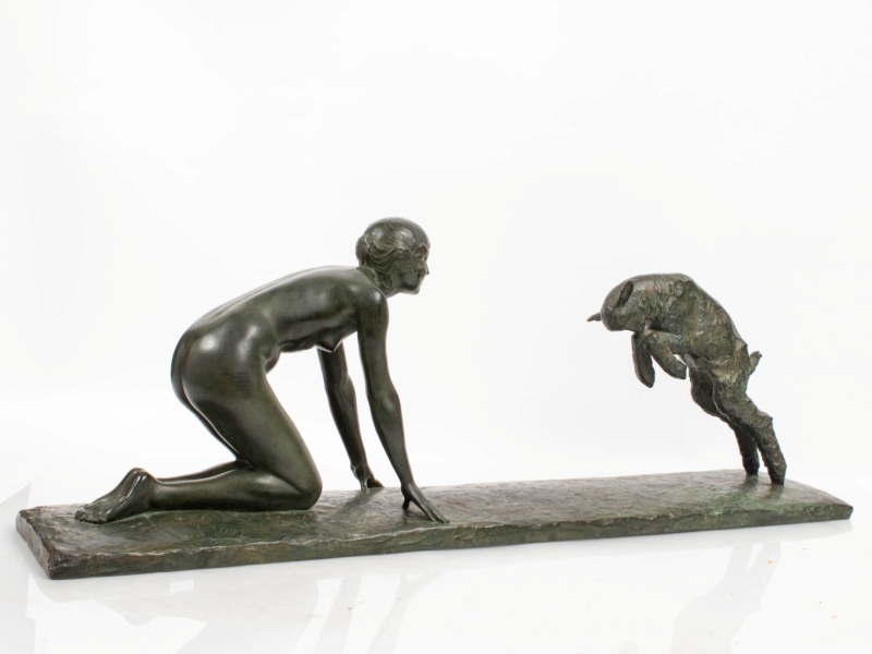 Bronze sculpture with green patina, signed on the pedestal, signed by the caster Susse Fres Edtrs, caster’s stamp and bronze hallmark.