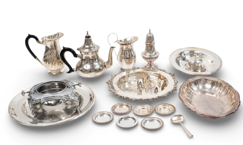 comprising: 4 dishes, 2 jugs, 1 caviar set, 1 sugar bowl, 1 butter dish, 10 knife holders, 1 teapot, 6 ashtrays