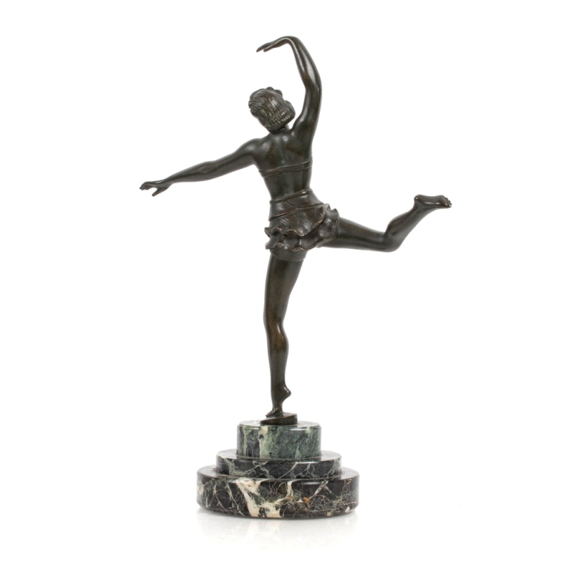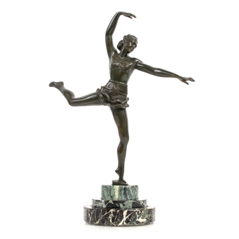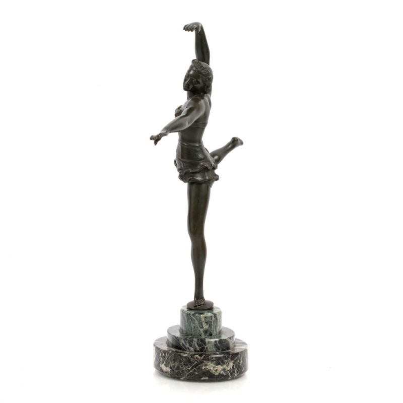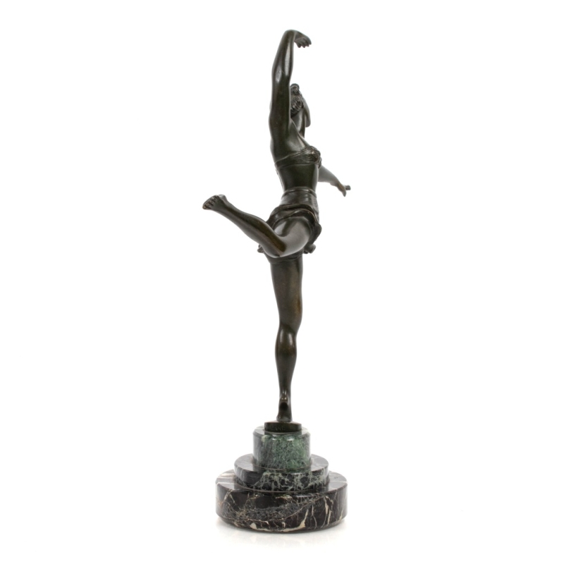 bronze sculpture with green patina, stepped plinth in sea-green marble. Signed