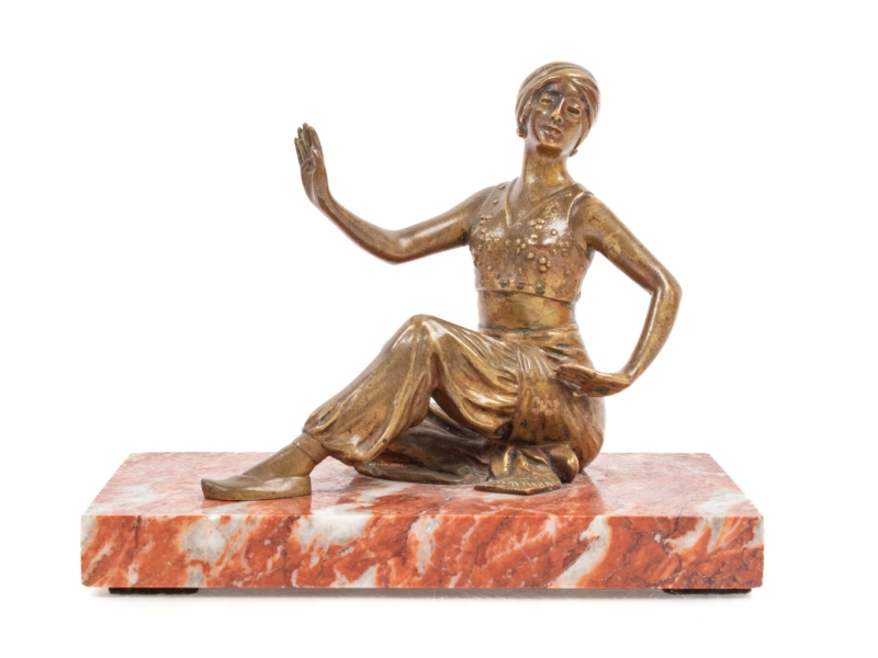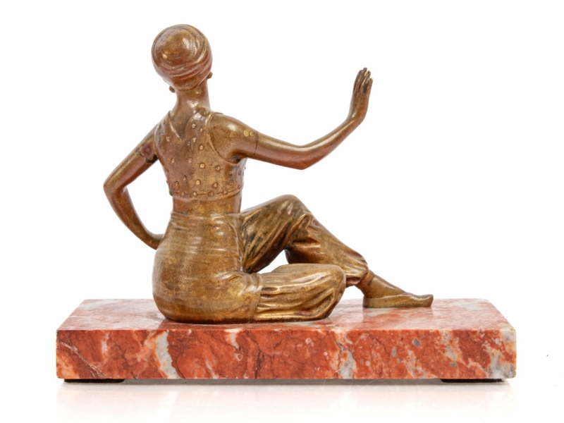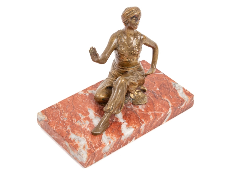 bronze sculpture, red marble plinth bearing an apocryphal signature