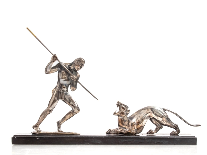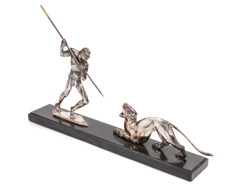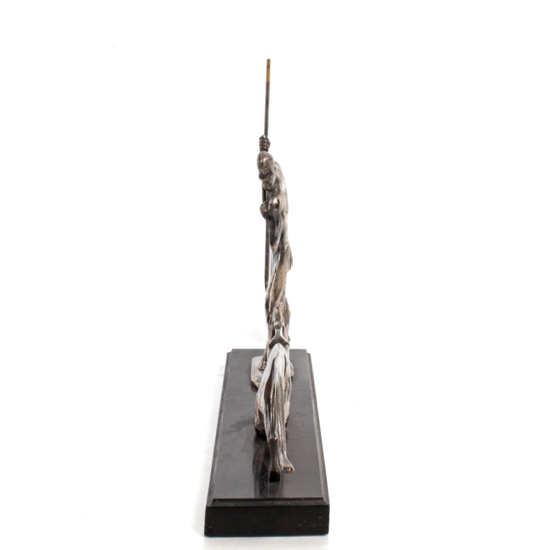 in silvered bronze, Belgian black marble plinth, signed