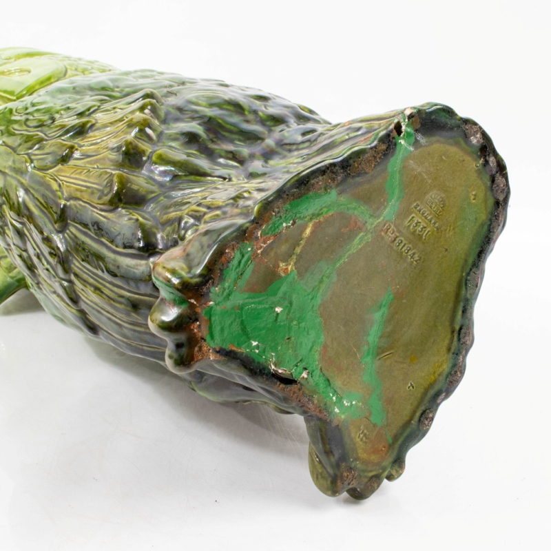 in green glazed ceramic with glass eyes