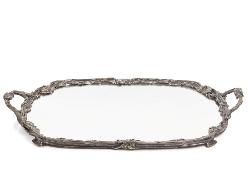 in pewter with floral decoration, mirrored top