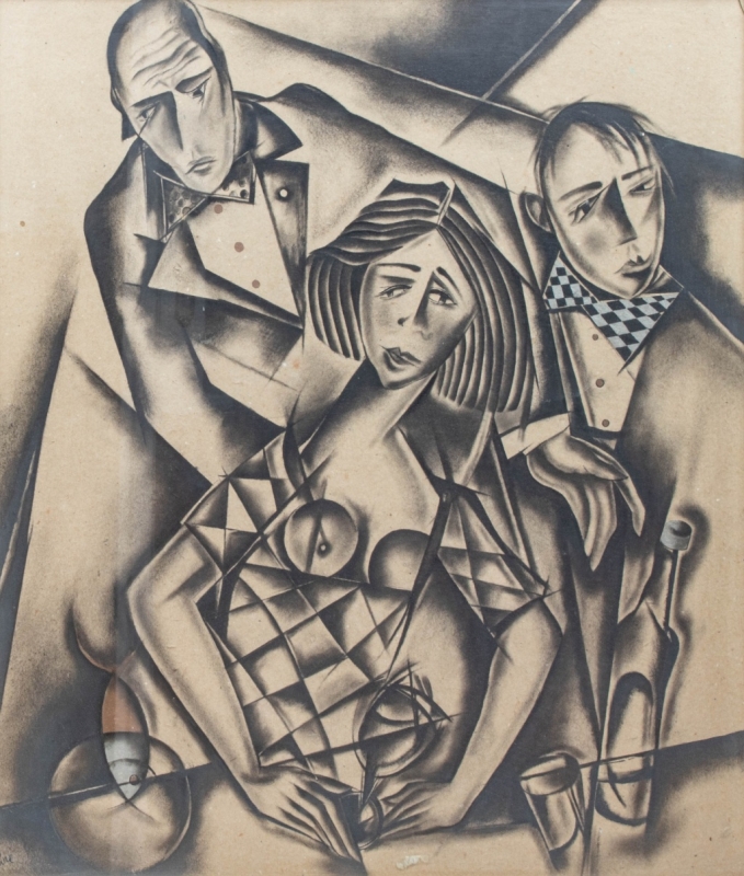 mixed media on cardboard, signed lower left
