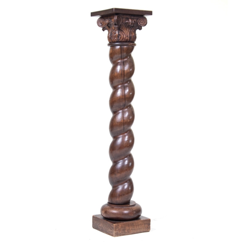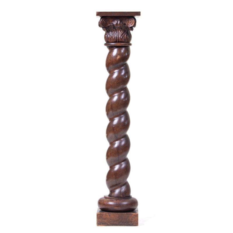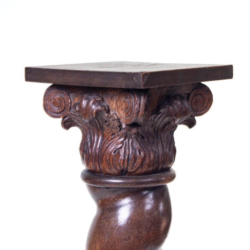 in carved oak with a capital featuring acanthus leaves and scrollwork