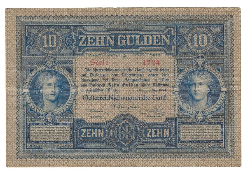10 Gulden, 1.5.1880, Série 1724, 025068 (Pick 1).
