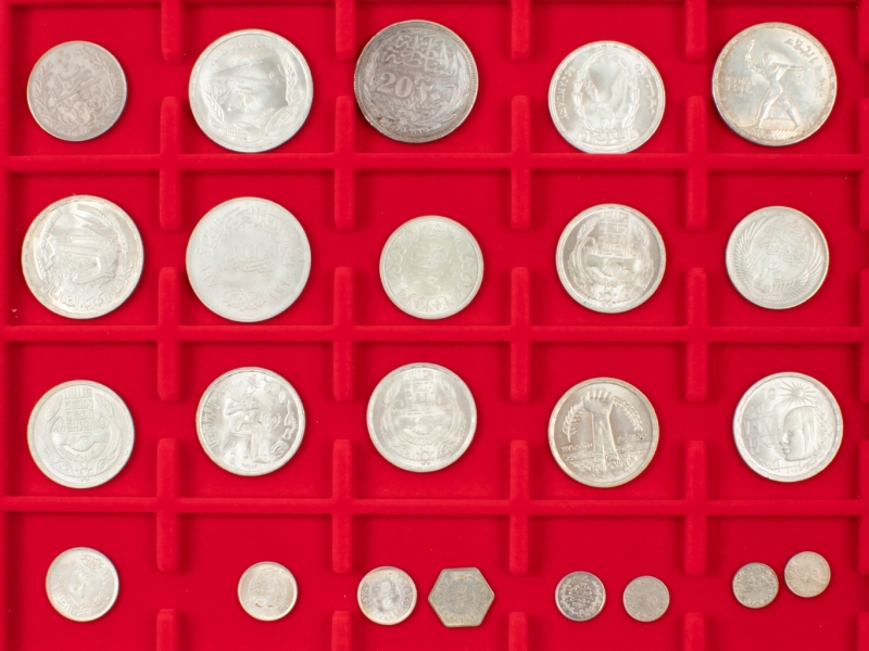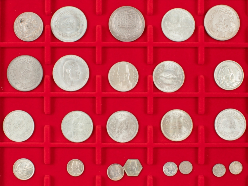 10 Qirsh, AH1327/3 ; Qirsh, AH1293/23 ; 1/10 Qirsh (3), AH1293/10, AH1293/28, AH1293/33 ; 50 Piastres, AH1375/1956 ; 20 Piastres (2), AH1335/1917, AH1375/1956 ; 10 Piastres (2), AH1356/1937, AH1384/1964 ; 2 Piastres (3), AH1348/1929, AH1356/1937, AH1363/1944 ; 5 Pounds, AH1408/1988 ; Pound (6), AH1387/1968, AH1390/1970, AH1393/1973, AH1397/1977 (3), AH1399/1979 (2), AH1400/1980.
