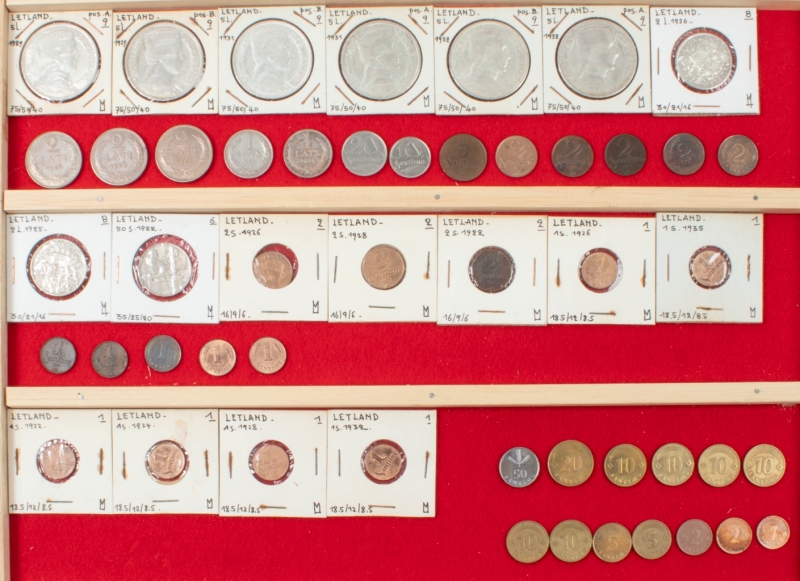 5 Lati, 1929 (2), 1931 (2), 1932 (2) ; 2 Lati, 1925 (2), 1926 (3) ; Lats, 1924 (2) ; 50 Santimu, 1922 ; 20 Santimu, 1922 ; 10 Santimu, 1922 ; 5 Santimi, 1922 ; 2 Santimi, 1922, 1926 (2), 1928 (2), 1932, 1937, 1939 ; Santims, 1922, 1924 (2), 1926 (2), 1928, 1932, 1935, 1937, 1938, 1939 ; avec des émissions de 1992 (13).