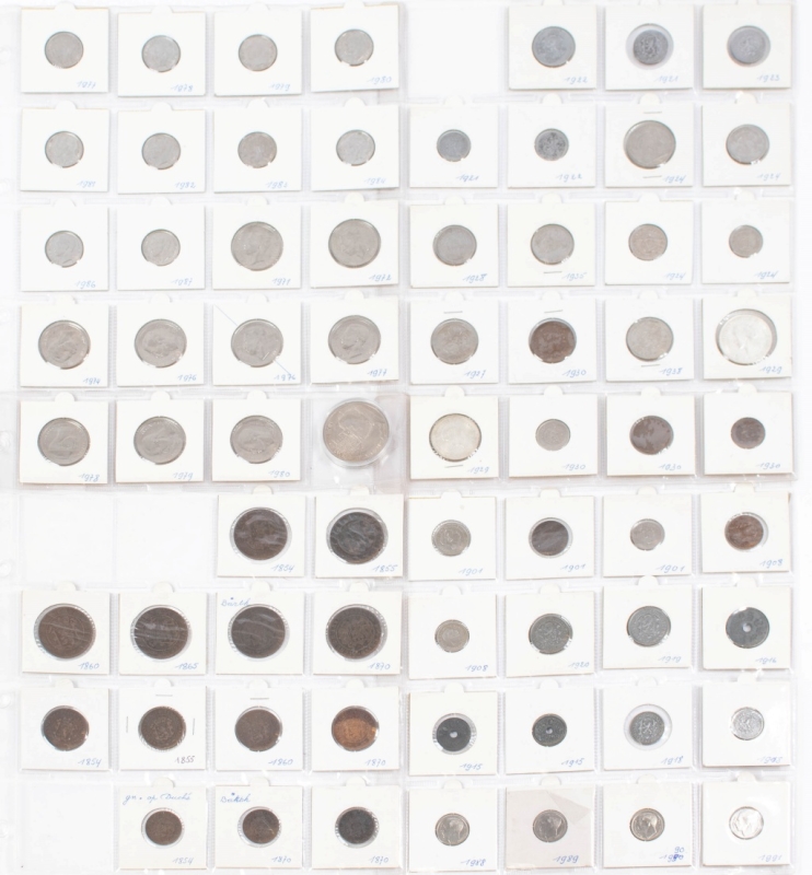Principalement 19e-20e siècles dont 250 Francs, (1963) ; 100 Francs, 1946, 1963, 1964 ; 50 Francs, 1946 ; 20 Francs 1946 ; 10 Francs, 1929 ; 5 Francs, 1929 ; 2 Francs, 1924 ; Franc, 1935 ; Essai du Franc en similor, 1965 ; 25 Centimes, 1919, 1920, 1922, 1960 frappe médaille ; 10 Centimes, 1854, 1855 A, 1860 A, 1865 A, 1870 avec point, 1870 sans point, 1915, 1918, 1923 ; 5 Centimes, 1854, 1855 A, 1860 A, 1870, 1921, 1922 ; 2 1/2 Centimes, 1854, 1870 avec point, 1870 sans point, 1901, 1908, etc.