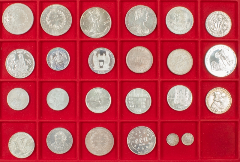 Afrique du Sud, Threepence, 1897 ; Allemagne, 5 Deutsche Mark (2), 1969 F, 1976 D ; Autriche, refrappe Thaler, 1780 SF ; 100 Schilling, 1978 ; 50 Schilling (5), 1968, 1969, 1970, 1974 proof, 1978 ; Belgique, 250 Francs (3), 1994, 1999 (2) ; 5 E.C.U., 1987 ; Congo belge, 50 Francs, 1944 ; Ethiopie, Gersh ; France, 50 Francs, 1979 (2) ; 10 Francs, 1967 ; Haïti, 50 Gourdes, 1974 ; 25 Gourdes, 1975 ; Liberia, 5 Dollars, 1973 ; Dollar, 1962, U.S.A, Dollar-1oz, 1990.