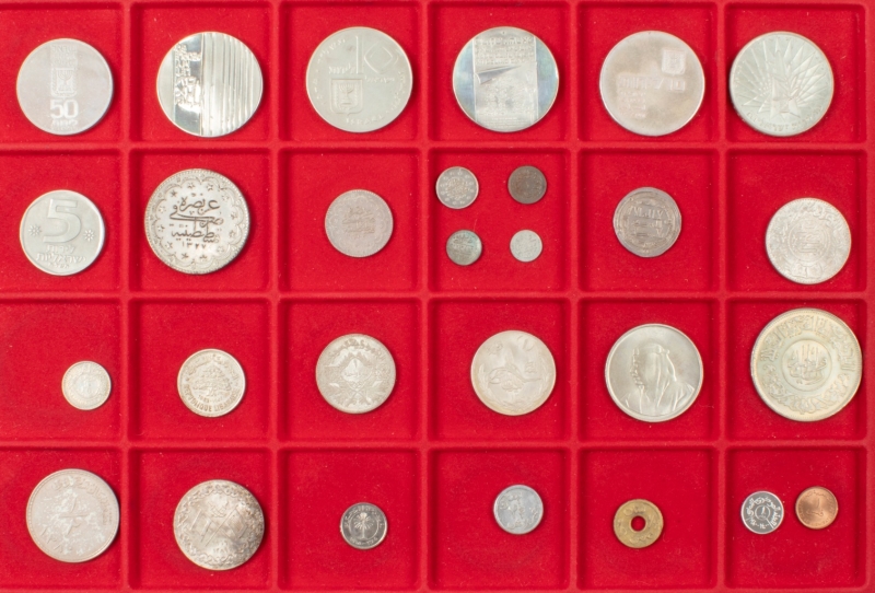 Afghanistan, Afghani, AH1305/8 ; Arabie saoudite, Riyal, AH1370 ; Bahrain, 500 Fils, 1968 ; 25 Fils, 1965 ; Israël, Proof 50 Lirot, 1978 ; 10 Lirot (5), 1967 étoiles sur la tranche, 1971, 1973, 1974 tranche lisse, 1974 ; Liban, 50 Piastres, 1952 ; 2 1/2 Piastres, nd (1941) ; 1/2 Piastre nd (1941) ; Muscat & Oman, 1/2 Saidi Rial, AH1380 ; Ras Al-Khaimah, 5 Rials, AH1389/1969 ; Syrie, 10 Piastres, 1929 ; Lira, AH1369/1950 ; Turquie, 20 Kurush, AH1327/8 ; 5 Kurush, AH1293/17 ; Kurush, AH1255/16 ; Para (3), AH1223/23, 0,16g ; 1255/4, 0,20g ; 1255/17, 0,60g ; Yemen, Riyal, AH 1382/1963.