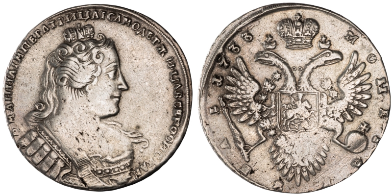 Rouble, 25,14g, 1733, sans bijou sur la poitrine (KM.192.2 ; Uzd.706).