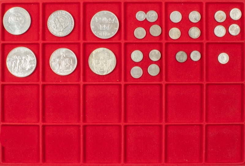Danemark, 2 Rigsbank Skilling, 1836 IFF ; 10 Kroner, 1972 ; 10 Ore (6), 1899 VBP, 1903 VBP (2), 1910 VBP, 1912 VBP, 1917 VBP ; Finlande, 10 Markkaa ; Islande, 1000 Kronur, 1974 ; 500 Kronur, 1974 ; 10 Aurar, 1940 ; Norvège, 2 Skilling, 1871 ; 10 Ore (4), 1889, 1901, 1913, 1964 ; Suède, 1/32 Riksdaler, 1853 AC ; 10 Ore (5), 1871 ST, 1907 EB, 1933 G, 1963 U, 1990 D ; 50 Kronor, 1975 U ; 5 Kronor, 1955 TS.