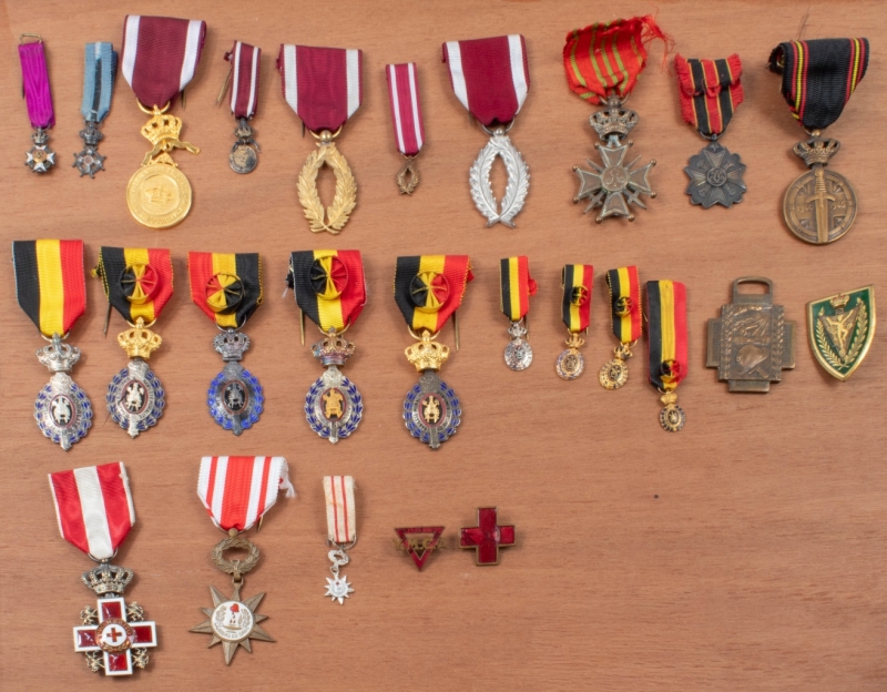 Ordre de Léopold, miniature de chevalier ; Ordre de Léopold II, miniature de chevalier avec brillants (manque le centre) ; Ordre de la couronne, médaille d'or avec miniature, Palmes d'or avec miniature, Palmes d'argent ; Croix du feu ; Croix de guerre, monogramme A ; Décoration civique, médaille d'argent pour courage ; Médaille du prisonnier de guerre 1940-45 ; Décoration spéciales 1ere classe, 2e classe avec miniatures ; Lauriers du sang avec miniature ; Pays-Bas, Croix du mérite de la croix-rouge (manque à l'émail) ; France, Badge Drago 2 char diable.