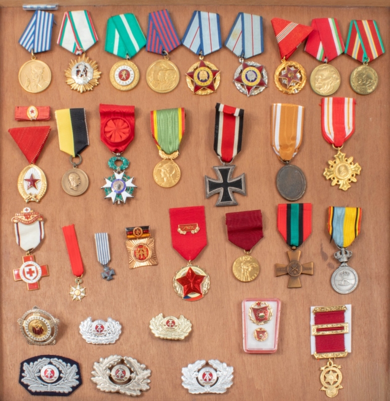 Bulgarie, médaille de mérite de l'armée populaire ; Ordre de la république populaire de Bulgarie ; Hongrie, Ordre du travail (dans son écrin) ; Roumanie, Médaille du mérite militaire (2), 1ere classe, 2e classe ; Yougoslavie, Ordre de la fraternité, numéroté 3890 0 au revers ; Médaille de la bravoure ; avec Allemagne, Croix de fer ; France, Légion d'honneur, Croix d'officier ; Grande-Bretagne, British Red Cross, etc.