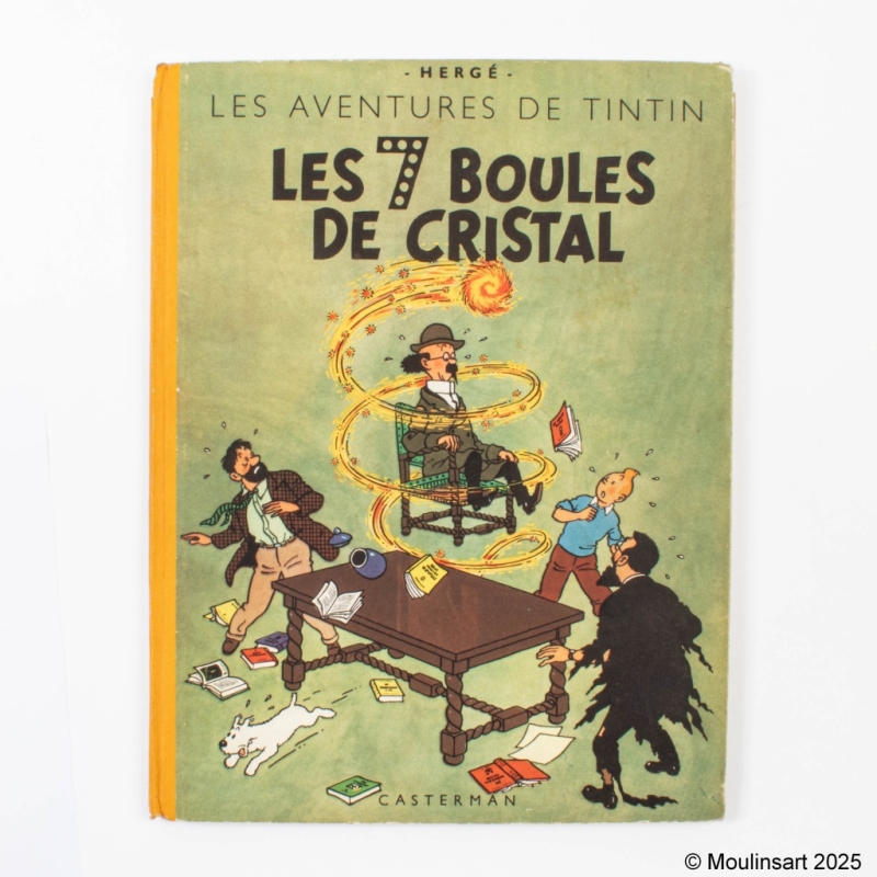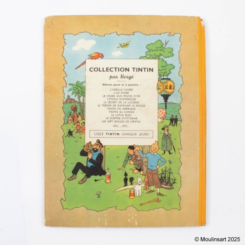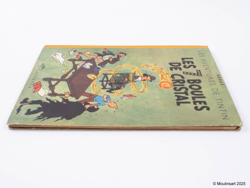 Dos jaune, B2, édition originale, texte bleu et momie sur la page de titre, manque 1,5cm dans le haut du dos, numéro 65 manuscrit au 2e plat, cahier complet en bon état, feuillets détendus, numéro 2 manuscrit dans la marge de la page 14.