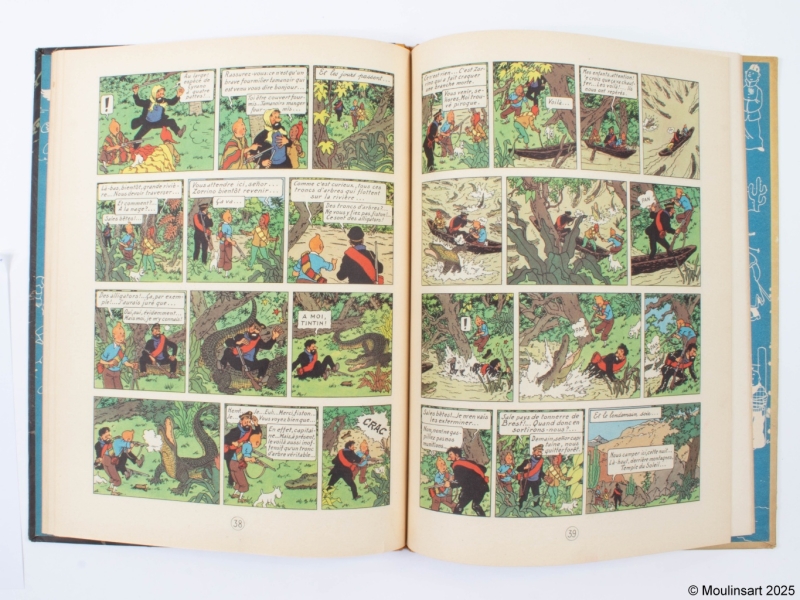 Dos jaune, B3, édition originale, 2 symboles incas à la page de titre, cahier complet en très bon état, tâche dans la marge aux pages 16, 17 et 55, petite déchirure à la marge inférieure de la page 38, petites déchirures aux pages de garde.