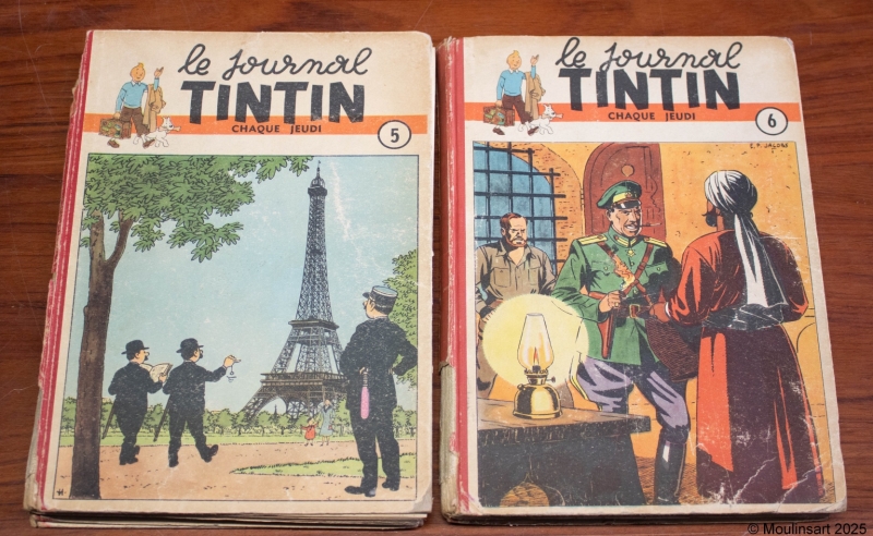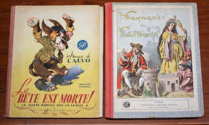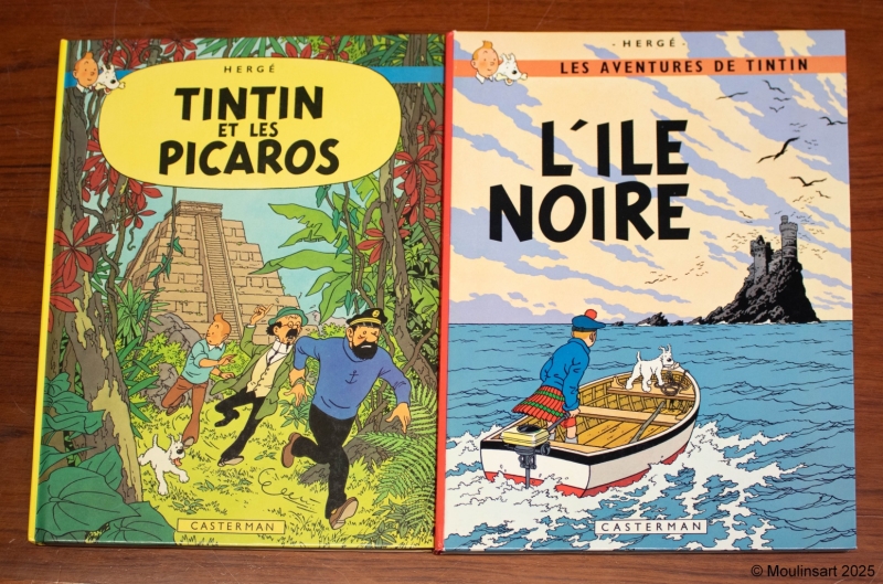 L'île noire, B38 bis, cahier complet. Très bon état ; Le crabe aux pinces d'or, B38 bis, cahier complet. Très bon état ; Tintin et les Picaros, C1 (24 traductions), cahier complet. Proche de l'état neuf ; Tintin et le lac aux requins, pages de garde rouges. Très bon état ; avec Le journal de Tintin (3), n°4, n°5, n°6. Mauvais état, dos manquant ; L'épervier bleu, dos manquant, griffonnage sur le 1er plat, mauvais état ; Bernard Chamblet dans le maquis. Bon état ; Bernard Chamblet dans la tourmente, cahier complet mais désolidarisé. Etat moyen ; La bête est morte, partie du cahier qui se désolidarise, Mauvais état. On y joint, Les aventures de Robert-Robert ; Voyages de Gulliver, Paris, 1931.
