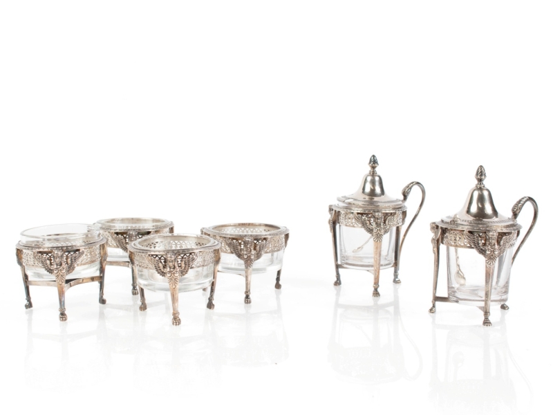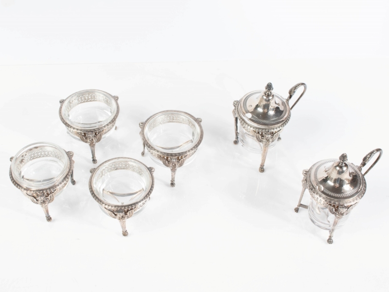 BELGIQUE, DÉBUT XIXE, Deux moutardiers et quatre salières, vers 1815