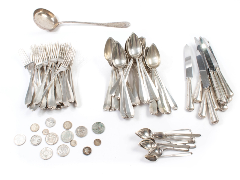 ON Y JOINT une louche en argent (800), 15 pièces en argent (640 à 900)
