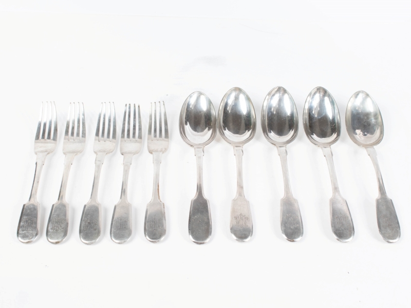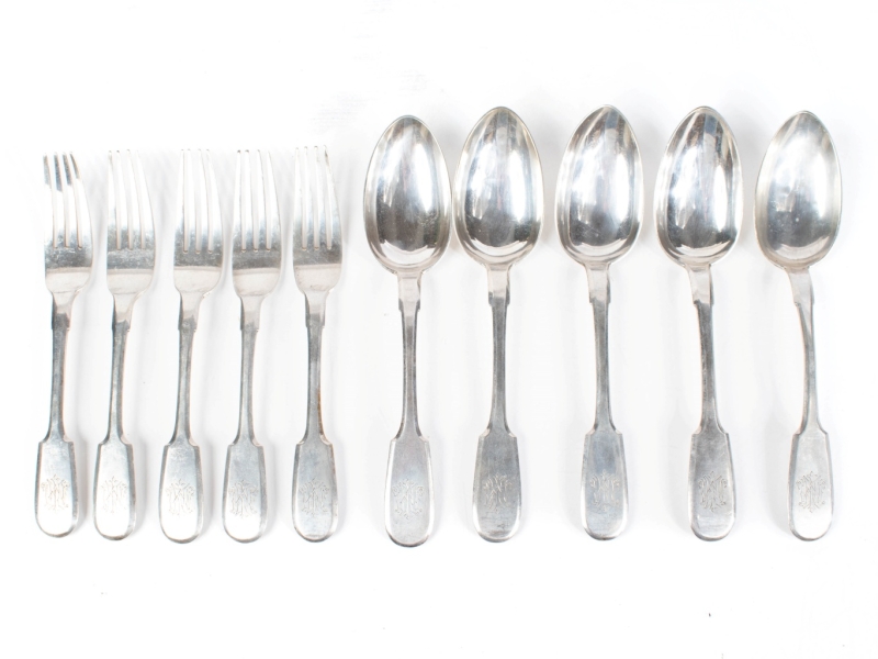 Suite de quatre fourchettes et six cuillères chiffrées, 1879