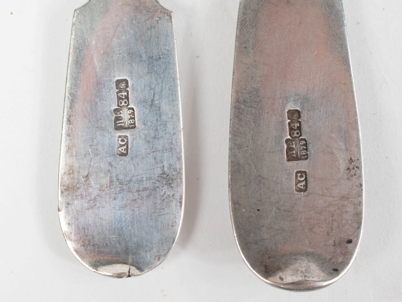RUSSIE, Suite de quatre fourchettes et six cuillères chiffrées, 1879